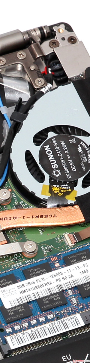 (±) De maximumtemperatuur aan de bovenzijde bedraagt 43.6 °C / 110 F, vergeleken met het gemiddelde van 35.9 °C / 97 F, variërend van 21.4 tot 59 °C voor de klasse Subnotebook.