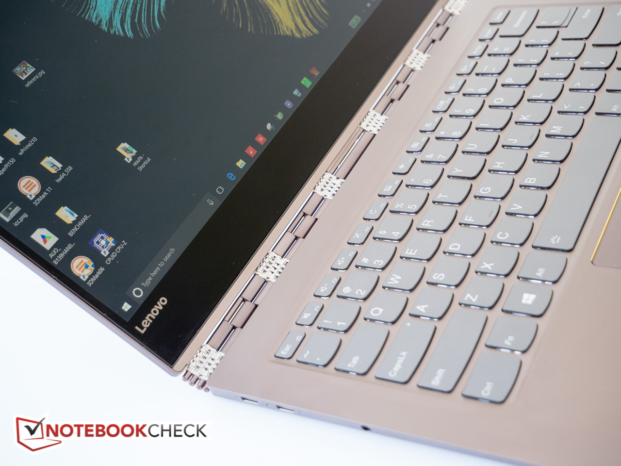De aluminium behuizing is prachtig en ook behoorlijk stevig. Het polsband scharnier ontwerp trekt nog steeds aandacht. Het beeldscherm had iets helderder gekund en het contrastratio en grijswaarden hadden ook wat beter kunnen zijn. En dan is er nog het formaat: de Yoga is nog steeds een van de grotere convertibles op de markt, en niet erg handzaam in tablet modus. Toch zullen er gebruikers zijn die de extra schermoppervlakte zullen waarderen. Het ontbreken van een "Lift 'n Lock" feature zoals de ThinkPad Yoga heeft laat ook de toetsen kwetsbaar, zodat er extra opgelet moet worden om schade te voorkomen. Throttling bij zware belasting beperkt ook het grote prestatie potentieel van de extra CPU cores wat, maar over het algemeen zijn de prestaties beter dan de voorganger, en we zien dit dan ook niet als groot nadeel. Een extra voordeel: het hinderlijke fluitende geluid dat we in de voorganger Yoga 910 opmerkten is niet langer aanwezig.