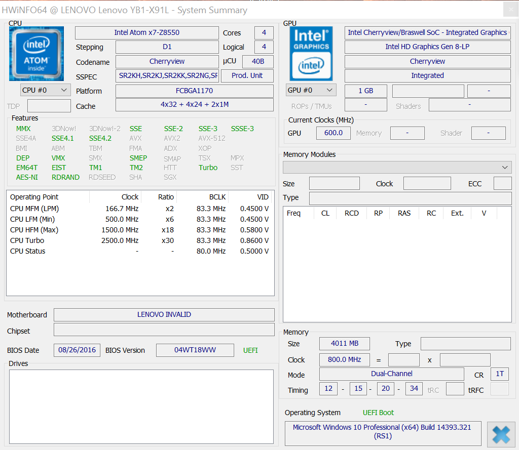 | Lenovo Yoga Book 2016 Windows 64GB LTE | |