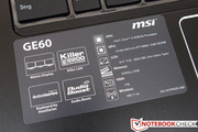 Like in other MSI notebooks, the manufacturer has installed four speakers in our GE60 test model. Thanks to Sound Blaster Cinema technology, and the good quality of the speakers, the sound output is quite impressive and can convey highs and middle notes clearly. The bass is weaker due to the build of the laptop.