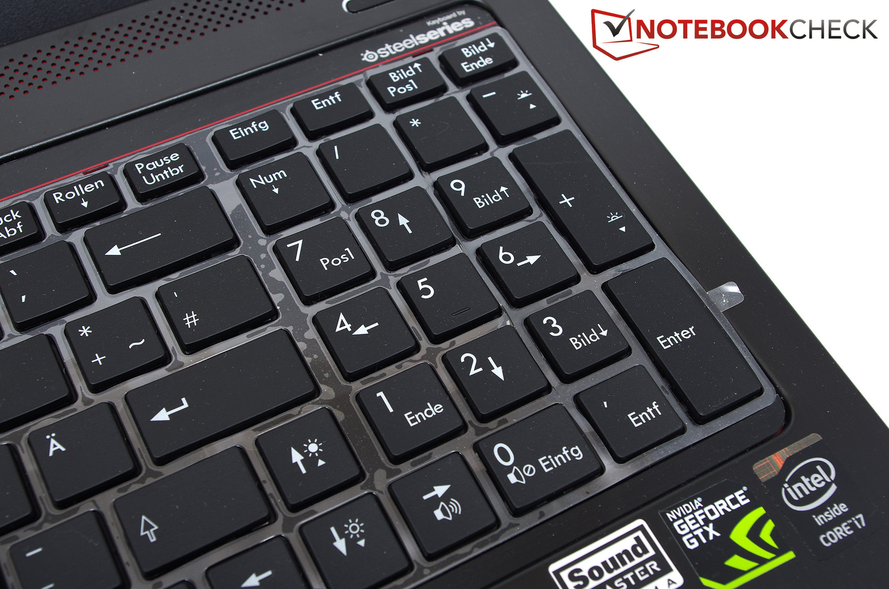 MSI has installed a backlit, SteelSeries keyboard in our test model, which can operate in many bright colors.