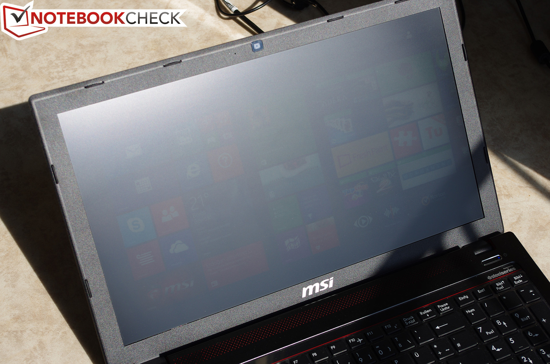 Instead of an SSD, the test model uses a traditional HDD, which has not been partitioned by the manufacturer. Eight gigabytes of RAM in a single slot offer the user the option of upgrading further. The anti-glare Full HD display allows the user to work comfortably in bright surroundings. The backlit keyboard with its various colors is designed to attract gamers.