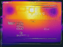 (+) Bij onbelast gebruik bedraagt de gemiddelde temperatuur voor de bovenzijde 26.9 °C / 80 F, vergeleken met het apparaatgemiddelde van 33.9 °C / 93 F.