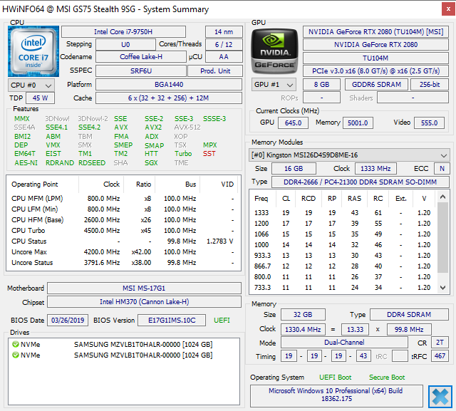 | MSI GS75 Stealth 9SG | |