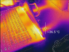 (±) De maximumtemperatuur aan de bovenzijde bedraagt 41.6 °C / 107 F, vergeleken met het gemiddelde van 40.4 °C / 105 F, variërend van 21.2 tot 68.8 °C voor de klasse Gaming.