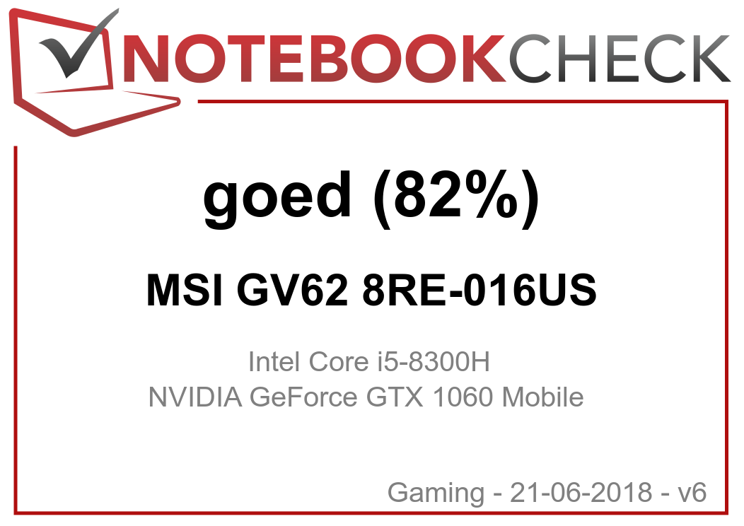 Afgezien van andere MSI laptops, is de GV62 een redelijk competente instapmodel gaming laptop. Voor $1050 voldoet het apparaat aan veel eisen wat betreft prestaties. De Core i5-8300H past goed bij de GTX 1060, welke niet vaak wordt gebruikt in laptops onder $1200. Vergeleken met andere instapmodel gaming laptops rond $1000 biedt de GV62 een betere prijs/prestaties verhouding voor games en multi-thread applicaties. Echter, deze prestaties gaat ten koste van de behuizing, beeldschermkwaliteit en looptijden.