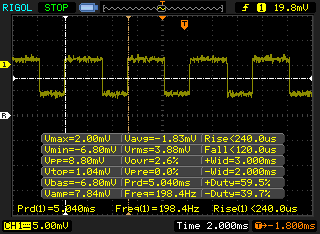 | PWM Frequency (Hz) | 198.4 ? | 1020 ? | 800 ? | 200 ? | 113600 ? | |