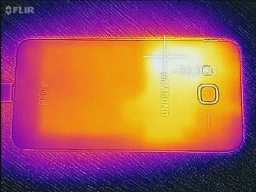 (±) Bij onbelast gebruik bedraagt de gemiddelde temperatuur voor de bovenzijde 33.1 °C / 92 F, vergeleken met het apparaatgemiddelde van 32.9 °C / 91 F.