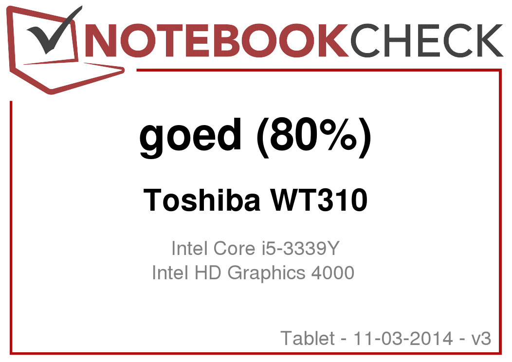 Al met al maakt de Toshiba WT310 dezelfde indruk als het besturingssysteem: het is vlees noch vis. We raden alternatieven met een goed toetsenbord dock aan, zoals de Wortmann Terra Mobile 1160 Pro, de Surface Pro 2, of de slider ultrabook Sony Vaio 11. Microsoft's nieuwste tablet lijkt vooral een aanrader: deze biedt een langere batterijduur, is krachtiger en heeft dezelfde prijs.