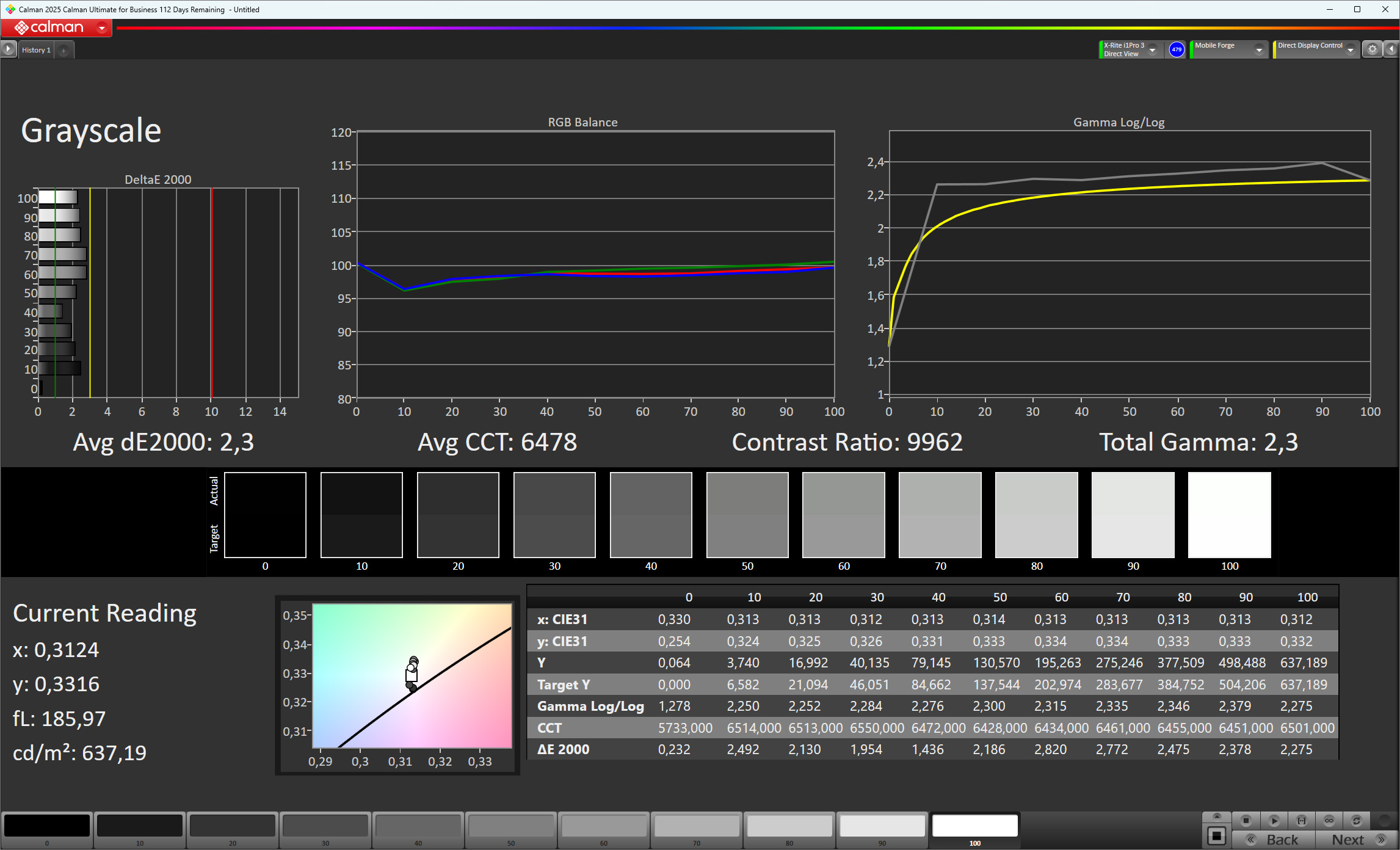 ΔE Greyscale Calman: 2.3 | ∀{0.09-98 Ø5}