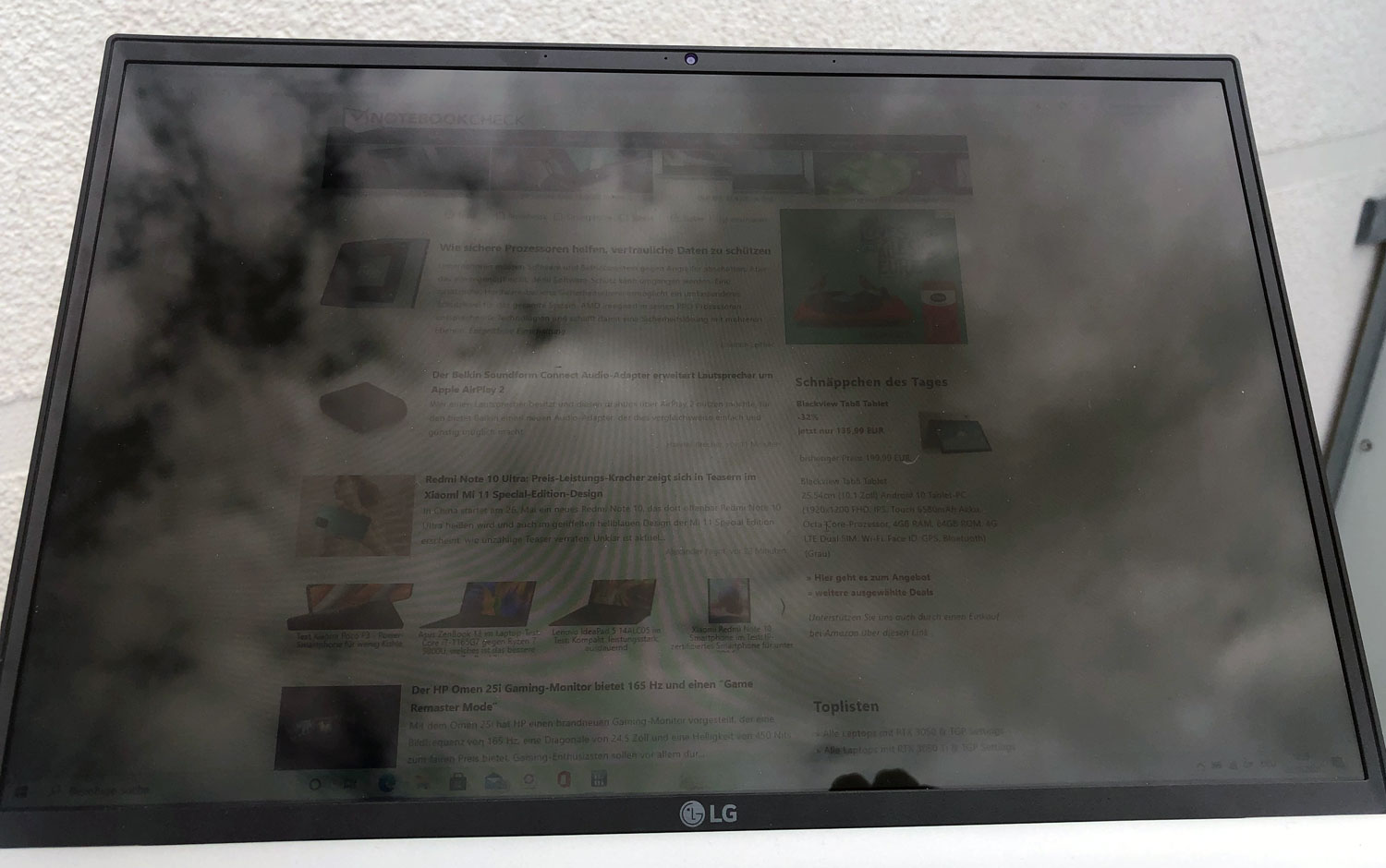 De gemiddelde helderheid is een goede 300 cd/m². Dat is degelijk, maar vooral bij gebruik buitenshuis wordt dit al snel de ondergang van het toestel. Vooral omdat het scherm glanzend is en dus sterk reflecteert. De verdeling van de helderheid is vrij gelijkmatig, en scherm bleeding is bijna onbestaande.
