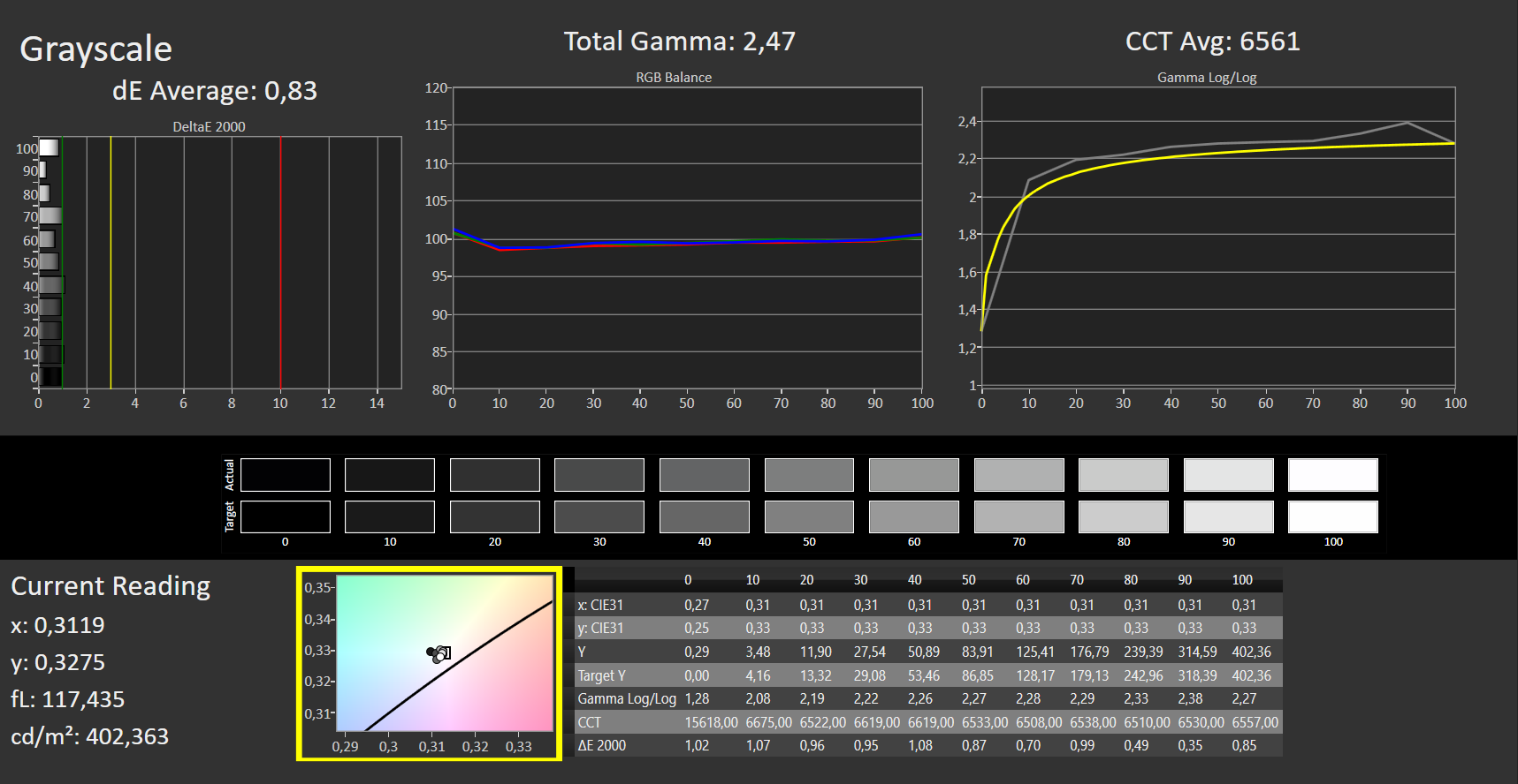 ΔE Greyscale Calman: 4.27 | ∀{0.09-98 Ø5}