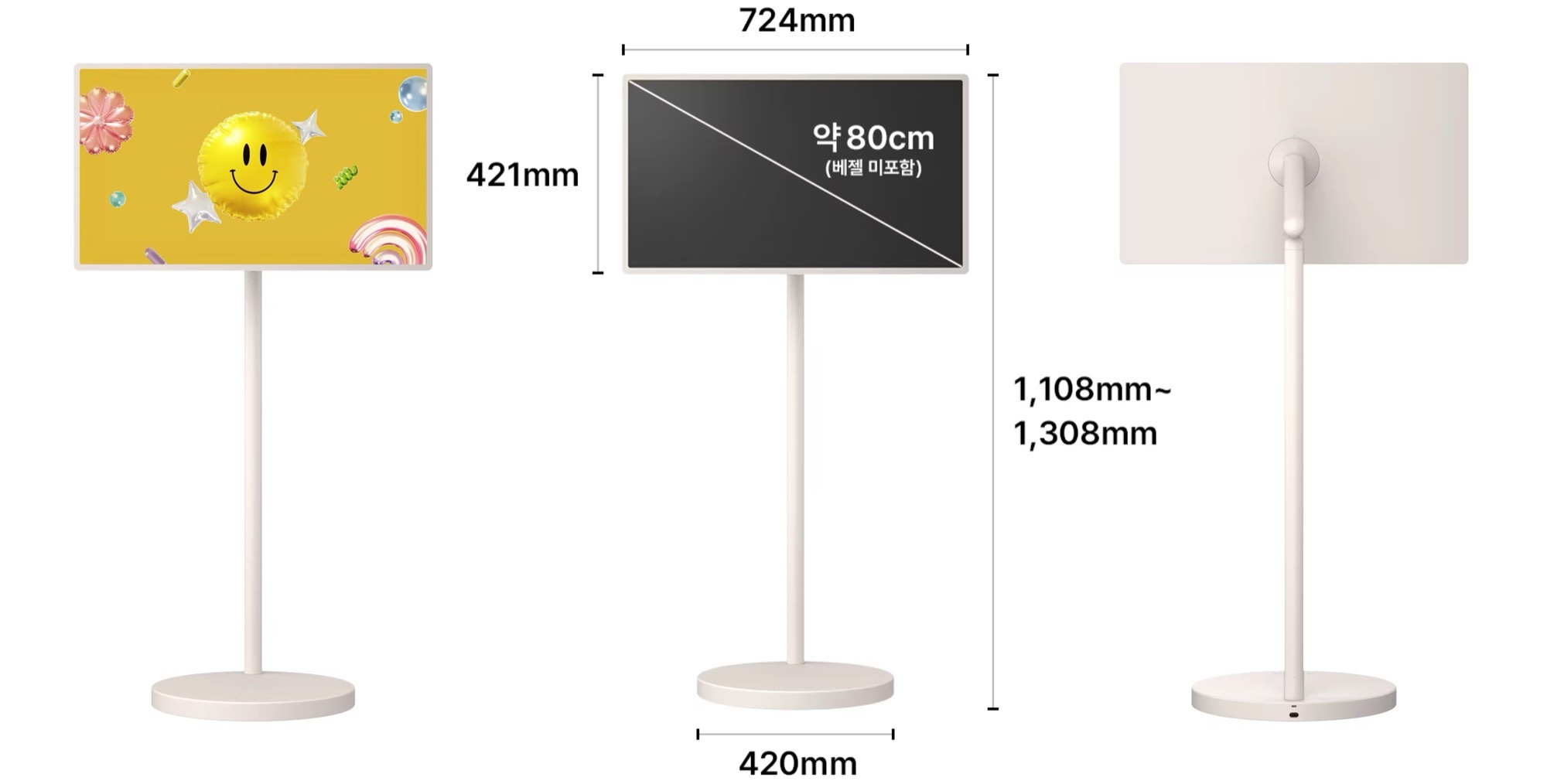Als alternatief zijn er ook een mini-afstandsbediening en spraakbediening beschikbaar. LG StandbyMe 2 Max verschilt vooral van gewone TV's door zijn draagbaarheid. LG levert een standaard mee die in hoogte kan worden versteld van 1,10 tot 1,30 meter. Dankzij de wieltjes kan hij gemakkelijk van de ene naar de andere kamer worden verplaatst. LG biedt een optionele one-point muurbevestiging die met slechts één schroef kan worden bevestigd