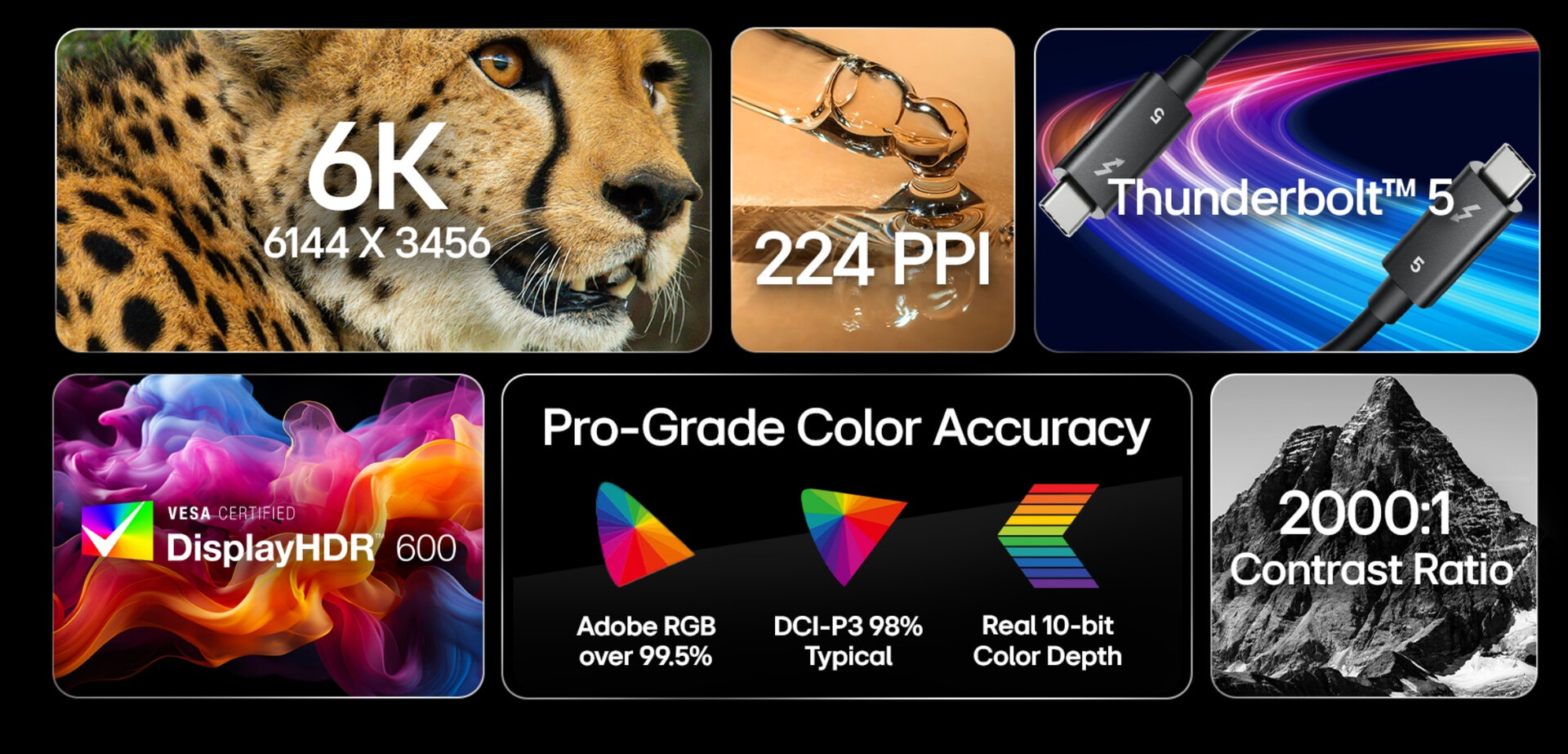 De UltraFine 32U990A lijkt op een Apple Studio Display (momenteel $1.699 bij Amazon) en levert 6.144 x 3.456 pixels op het 31,5 inch IPS-paneel voor een pixeldichtheid van 224 PPI. Daarnaast levert de monitor 98% DCI-P3 en 99,5% AdobeRGB kleurruimtedekking met 450 nits piek SDR en 600 nits HDR helderheid. Helaas beperkt LG de vernieuwingsfrequentie van de monitor tot 60 Hz, wat vaak het geval is bij professionele monitoren waar de visuele getrouwheid belangrijker is dan de beeldsnelheid.