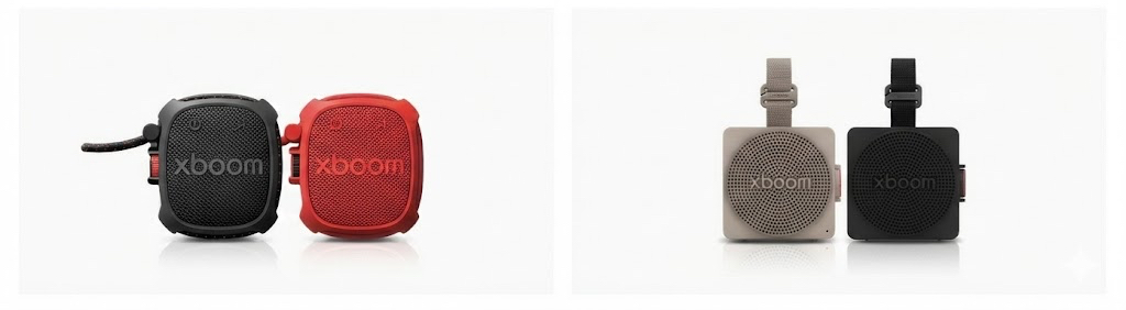 Op zoek naar kleinere vormfactoren introduceerde LG de Xboom Mini. Dit model heeft een stijlvol "kubus"-ontwerp dat bedoeld is om naadloos in het interieur te passen, zoals keukens of terrassen. Ondanks zijn compacte formaat kan de Mini 10 uur afspelen en maakt hij gebruik van "Sound Field Enhance" om de geluidshelderheid in open ruimtes te behouden. Hij is IP67-gecertificeerd voor water- en stofbestendigheid en wordt geleverd met een "Magic Strap" en statiefbevestiging, waardoor hij veelzijdig genoeg is om zowel binnen op een plank te zetten als buiten op te hangen.