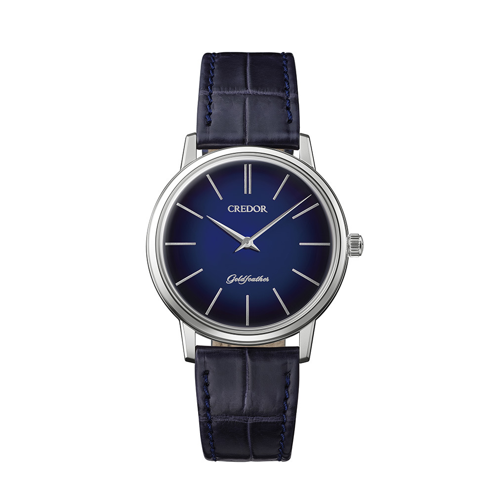 De Goldfeather GBBY967 heeft een wijzerplaat met Urushi-lak met blauw kleurverloop. Ambachtslieden brengen de lak in meerdere lagen aan voor een vloeiende, natuurlijke overgang van donker naar licht in de wijzerplaat. De indexen zijn verhoogd met "taka maki-e" met platina poeder. Dit horloge heeft het handmatige Kaliber 6810 in een platina kast van 37,1 mm. Hij is 7,3 mm dik met 3 bar waterdichtheid en wordt verkocht voor 3.520.000 JPY (~$22.210).