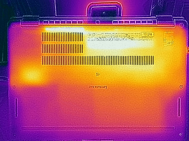 (+) De maximumtemperatuur aan de bovenzijde bedraagt 38.6 °C / 101 F, vergeleken met het gemiddelde van 35.9 °C / 97 F, variërend van 21.4 tot 59 °C voor de klasse Subnotebook.
