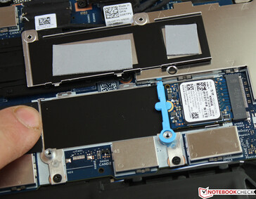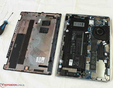 De hardware is toegankelijk nadat de onderschaal is verwijderd. Alle schroeven aan de onderzijde van het toestel worden losgemaakt. Als u het paneel eraf tilt, moet u beginnen in het gebied van de scharnieren. Je hebt dan toegang tot de SSD, de batterij, de WLAN module, de LTE modem (optie, voorbereid met antennes), en de ventilator. Er zijn geen geheugensleuven, het RAM-geheugen is onboard.