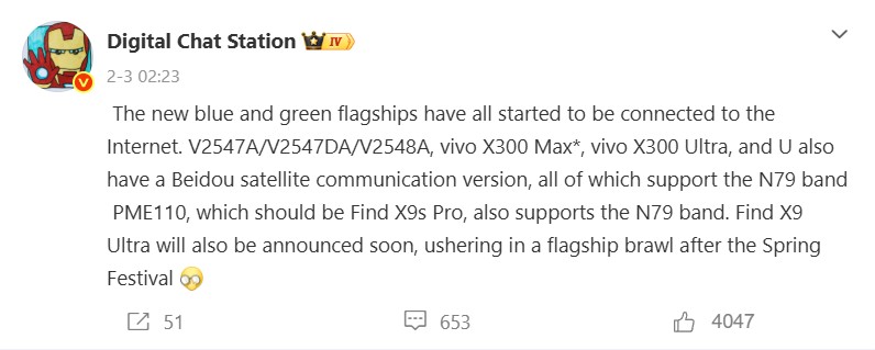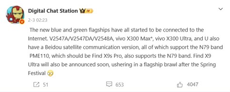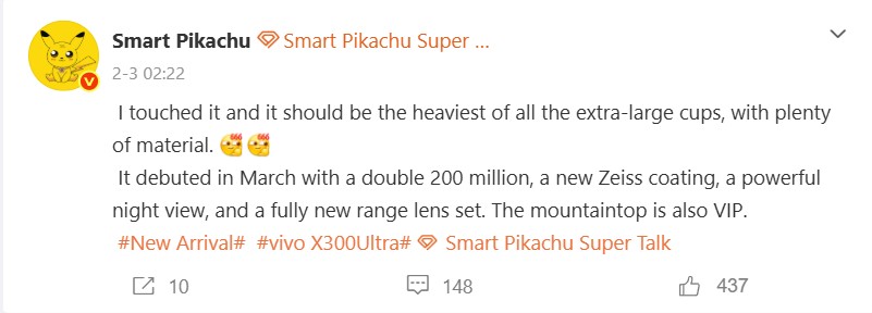 Een belangrijk voordeel van de Vivo X200 Ultra ten opzichte van zijn concurrenten was, en is nog steeds, zijn 1/1,28-inch ultra-groothoekcamera. Deze functie zal waarschijnlijk nog verder worden verbeterd op het opvolgmodel, zoals Digital Chat Station onlangs op Weibo heeft uitgelegd. Vooral video-opnames zullen naar verwachting profiteren van de beste ultra-groothoek in de branche. Een ander interessant aspect van dit bericht is een opmerking over een Vivo X300 Max, die blijkbaar tegelijk met de Vivo X300 Ultra in China zal worden gelanceerd en waarschijnlijk een grotere Vivo X300 variant met vergelijkbare camerafuncties