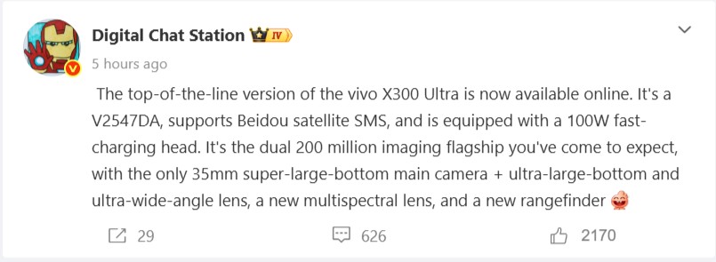 Vivo X300 Ultra: Meer specificaties online
