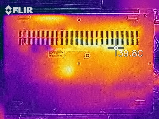De Lenovo laptop warmt slechts in geringe mate op. Zelfs onder volledige belasting (stresstest) voelt de behuizing slechts warm aan. De CPU temperaturen zijn geen reden tot bezorgdheid.