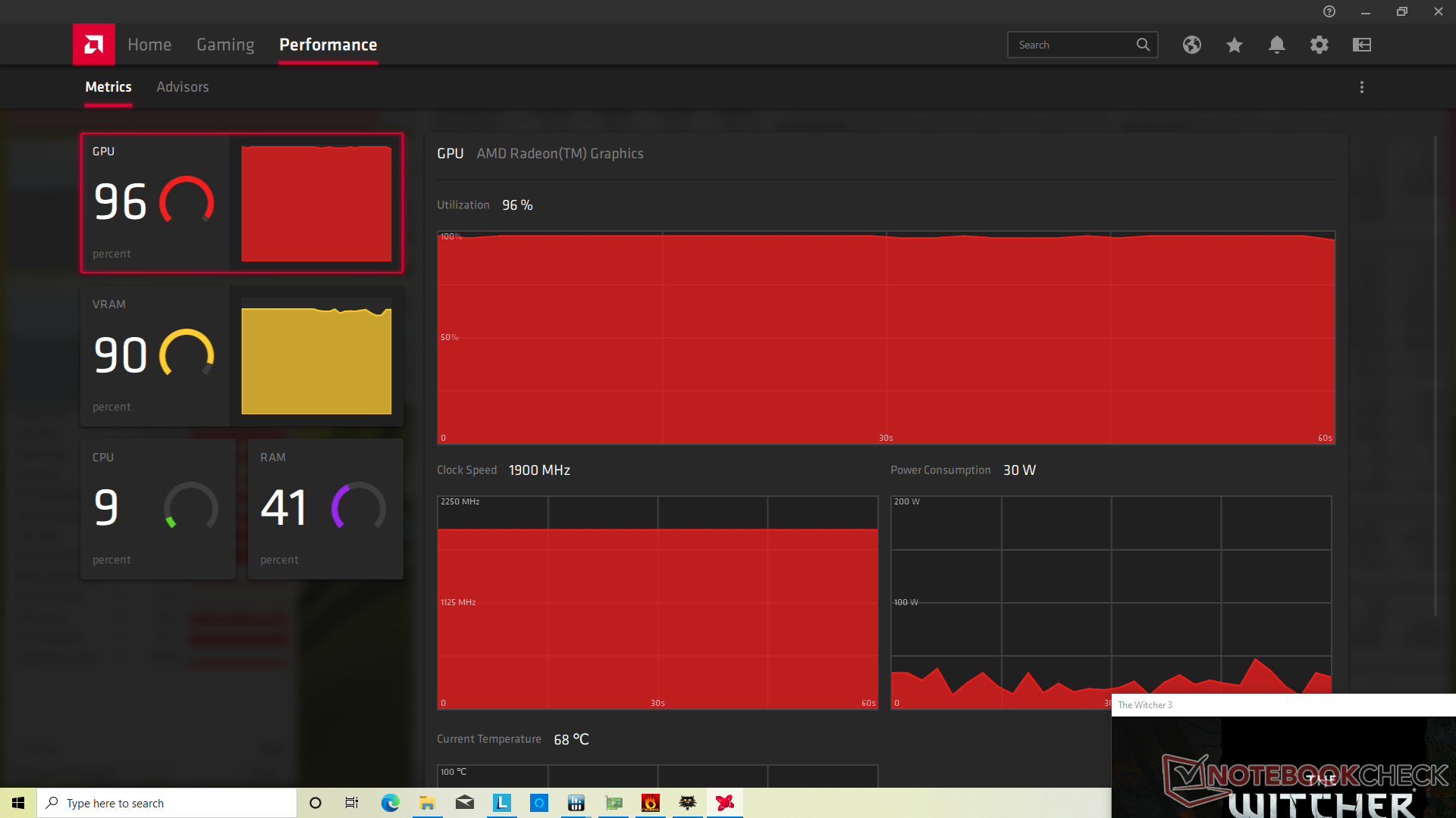 Wanneer de Witcher 3, zou de GPU kloksnelheid stabiel blijven op 1900 MHz voor een redelijke kerntemperatuur van 76 C. De Intel Tiger Lake-aangedreven HP Spectre x360 14 zou ook stabiliseren op ongeveer hetzelfde temperatuurbereik bij het uitvoeren van dezelfde game