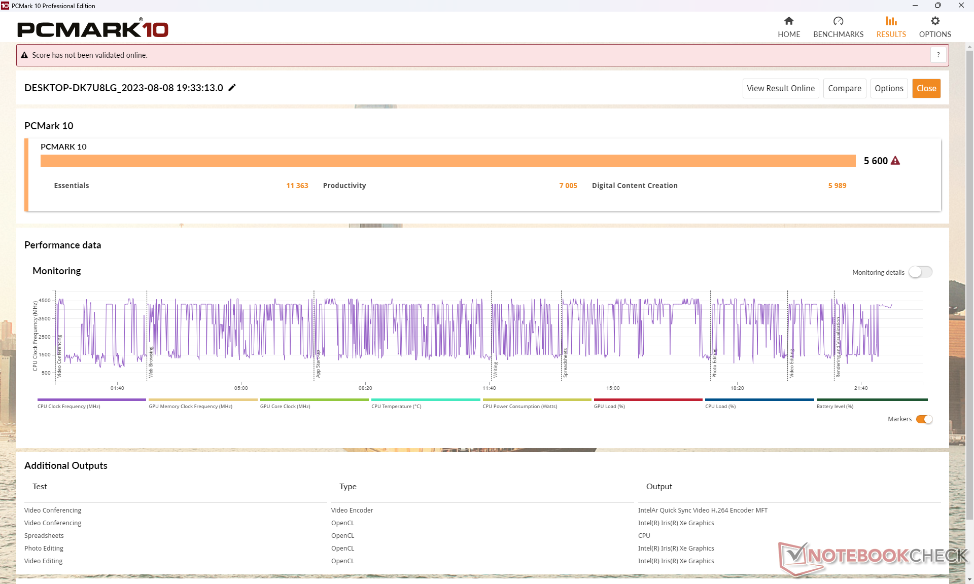 De batterijduur is ongeveer een half uur langer dan voorheen. We zijn in staat om bijna 10 uur echt WLAN-gebruik te registreren, wat concurrerend is met de Inspiron 14 7435 2-in-1 of deAcer Aspire 5 Spin 14.