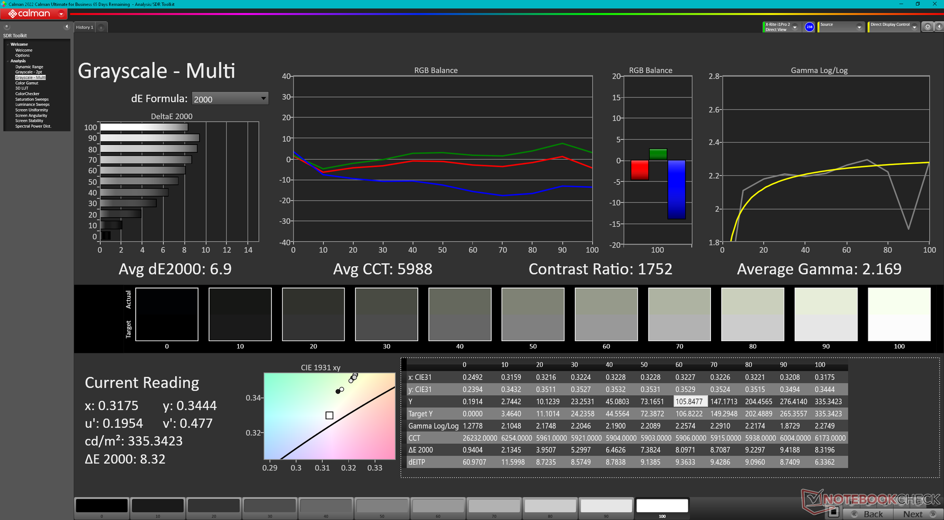 ΔE Greyscale Calman: 6.9 | ∀{0.09-98 Ø5}