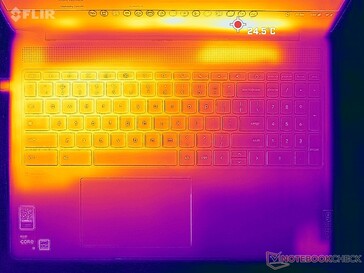 (+) Bij onbelast gebruik bedraagt de gemiddelde temperatuur voor de bovenzijde 22.4 °C / 72 F, vergeleken met het apparaatgemiddelde van 31.3 °C / 88 F.