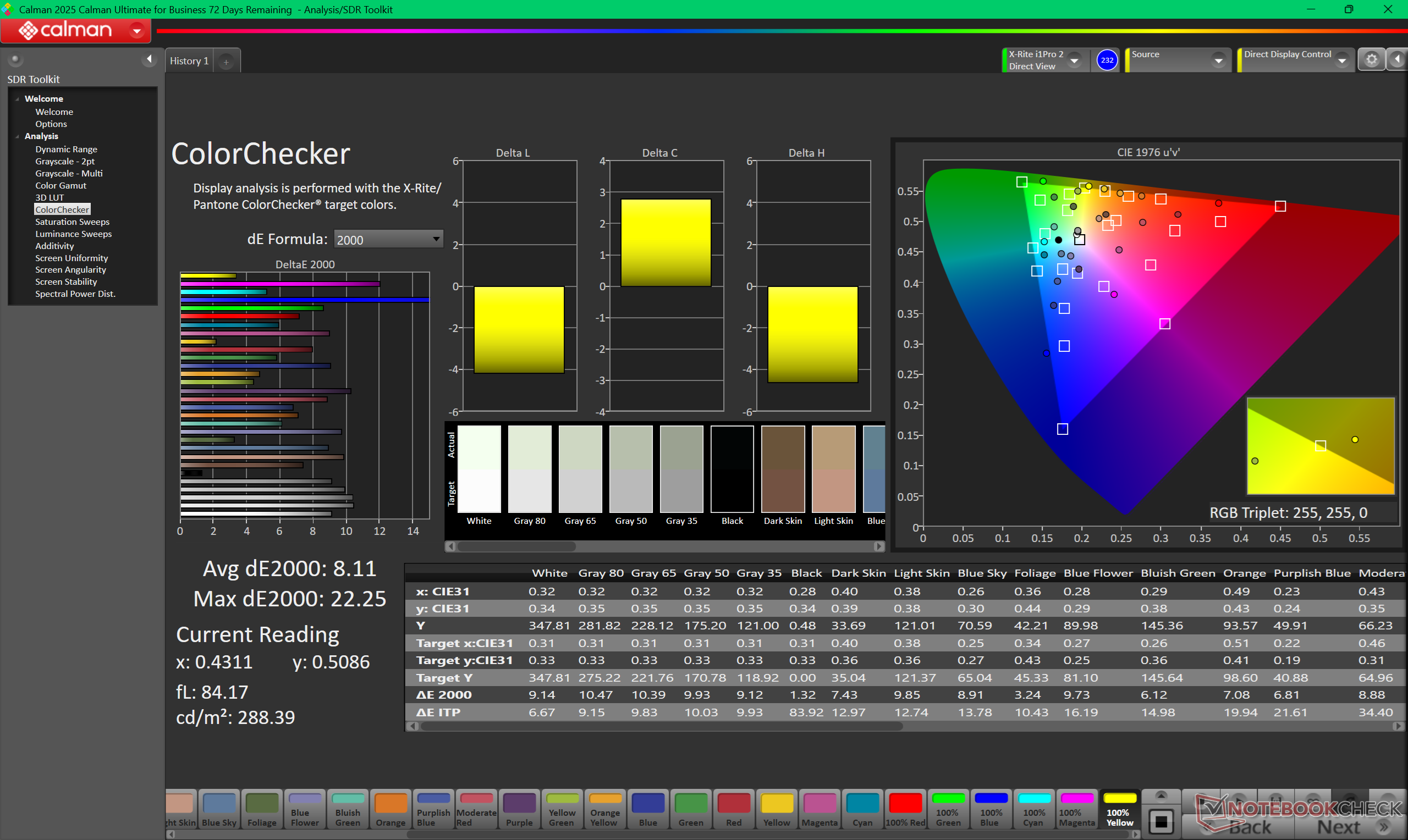 ΔE ColorChecker Calman: 8.11 | ∀{0.5-29.43 Ø4.78}