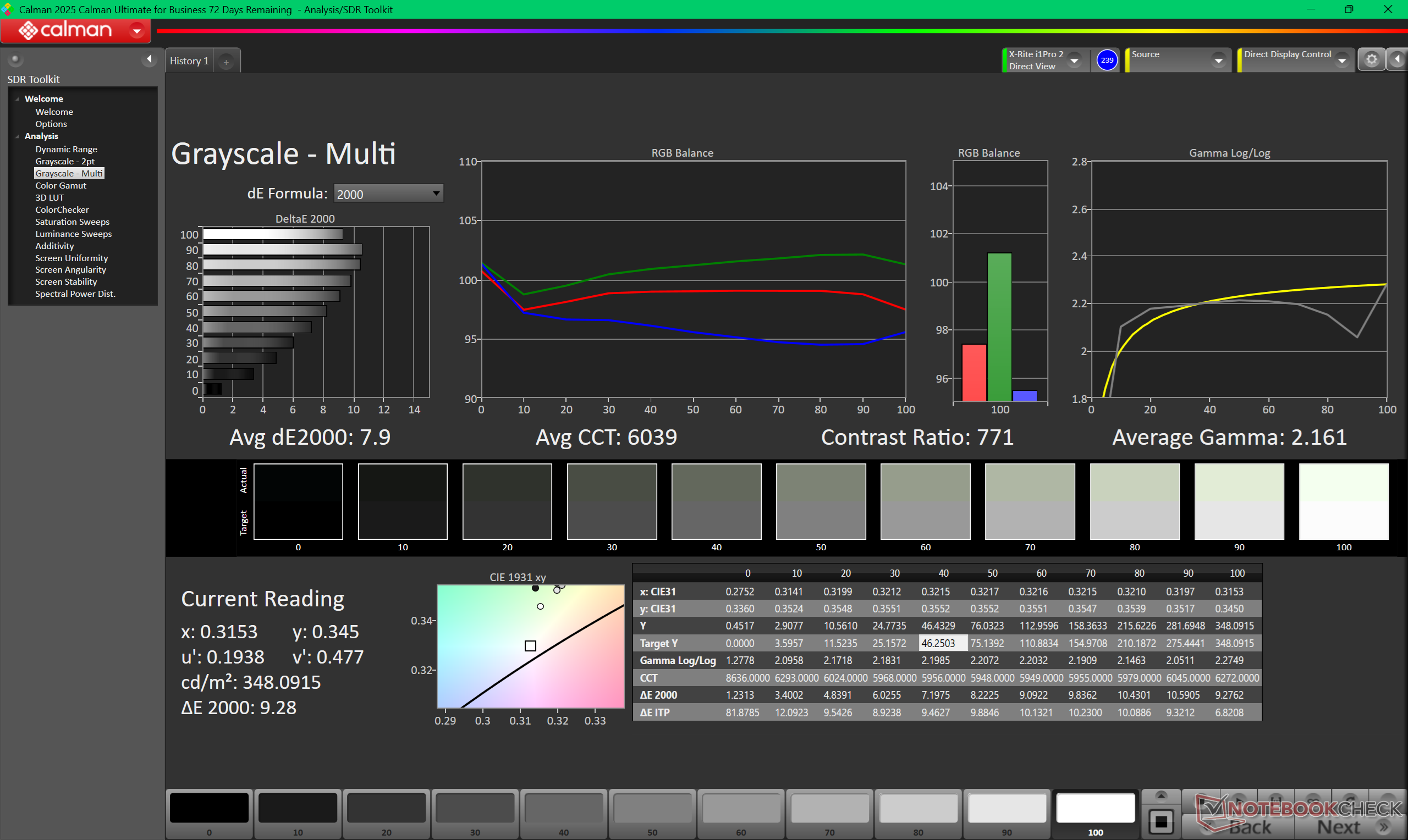 ΔE Greyscale Calman: 7.9 | ∀{0.09-98 Ø5}