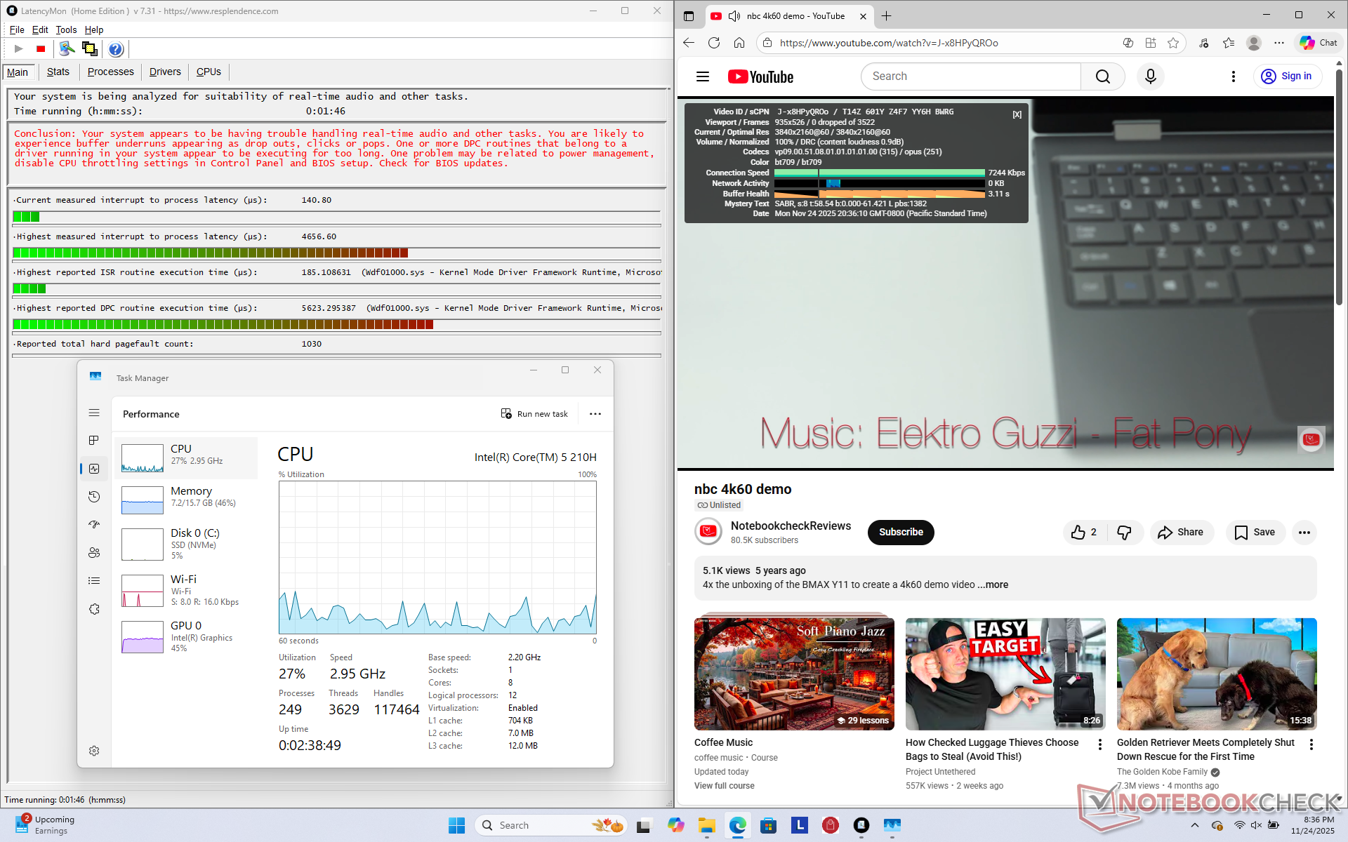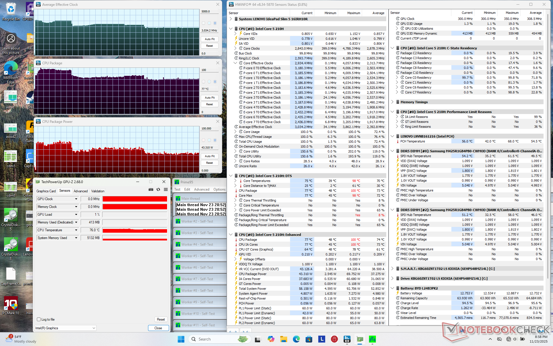 De 2025 Lenovo Ideapad Slim 5 16 is er in twee smaken: AMD of Intel. Na zowel de Ryzen AI 5 330 en Core 5 210H configuraties hebben getest, kunnen we gerust zeggen dat de Intel-versie tot 50 procent snellere multi-thread prestaties en 10 tot 30 procent snellere gamingprestaties levert dan de AMD-versie, afhankelijk van de titel. Het stroomverbruik bij het uitvoeren van veeleisende belastingen is over het algemeen hoger en dus zijn de prestaties per watt niet per se veel beter, maar de WLAN-batterijduur is verder redelijk vergelijkbaar.