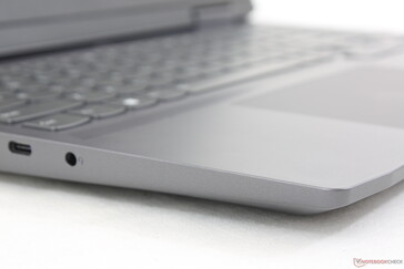 De poortopties omvatten alles van de IdeaPad Gaming 3 15 van vorig jaar plus een extra USB-A poort. De meeste poorten bevinden zich aan de achterkant, maar de enkele USB-C poort is verplaatst naar de linkerrand dit keer voor gemakkelijker bereik.