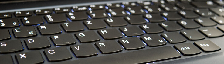 Lenovo gebruikt voor de Legion 5 15 een 6-regelig chiclet-toetsenbord, dat we al kennen van de 17-inch variant. De bijbehorende verlichting heeft twee instelbare niveaus. De toetsen zijn aangenaam groot en de pijltjestoetsen zijn van voldoende formaat. De korte slag van slechts 1,5 millimeter gaat gepaard met een licht gedempte aanslag en een duidelijk waarneembaar drukpunt. Er is dus geen sponzig typegevoel.
