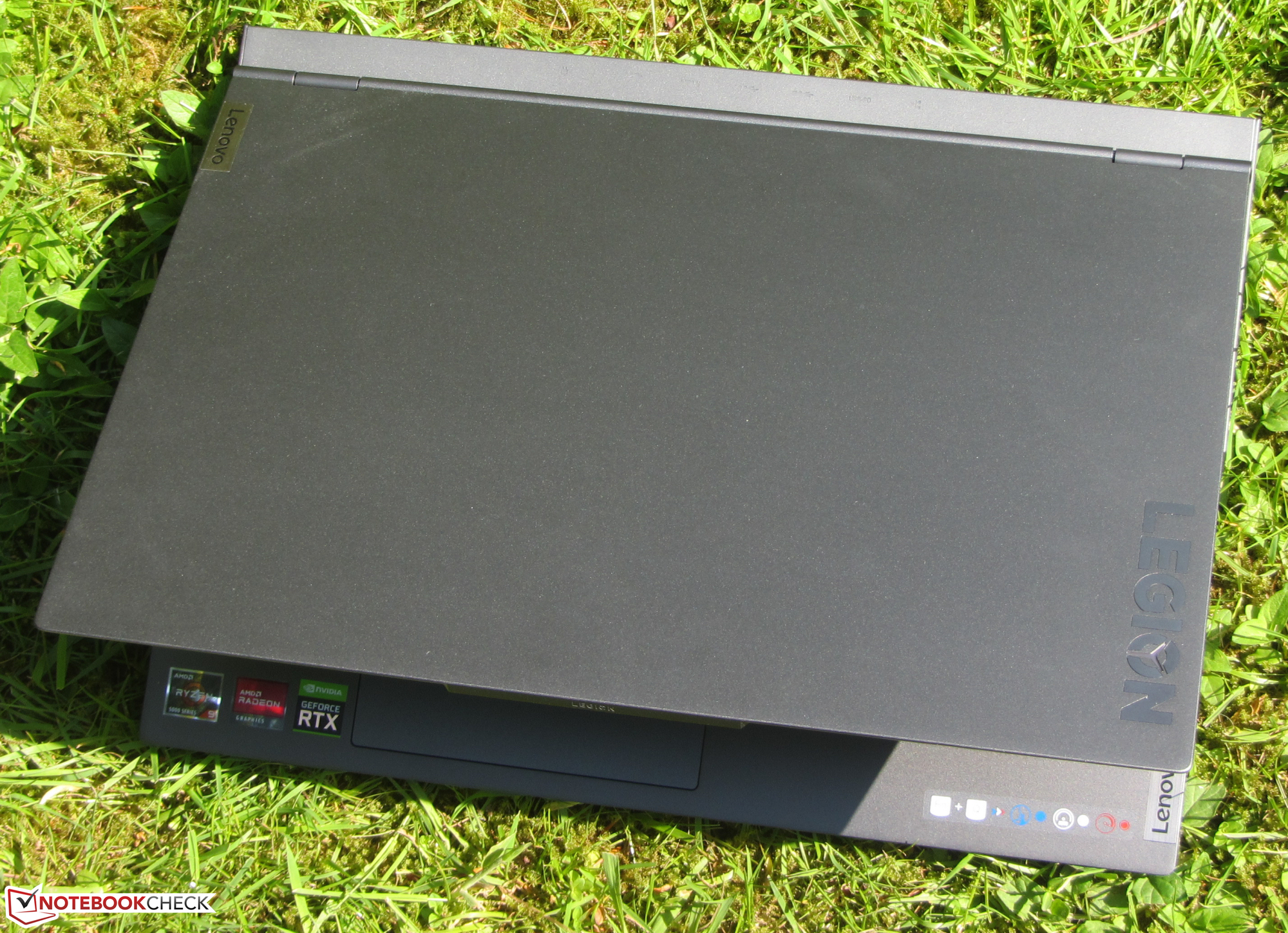 Lenovo kiest voor een grijze (Storm Gray) aluminium behuizing met matte, gladde oppervlakken voor de Legion 7. De behuizing volgt Lenovo's Legion ontwerpschema: Het deksel ligt niet gelijk met de achterkant, maar deze steekt in plaats daarvan een paar millimeter over de rand van het deksel uit - in het geval van ons testtoestel is dat ongeveer 18 mm. De batterij is stevig ingebouwd in het toestel, en er is geen onderhoudsluikje. Het bodemdeksel moet worden verwijderd om toegang te krijgen tot het binnenwerk. Hierover later meer.