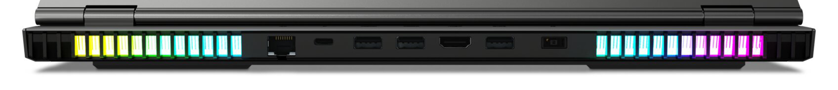 De poorten zijn verdeeld over drie zijden van de laptop. Het merendeel van de poorten bevindt zich aan de achterkant van het apparaat. Hierdoor lopen aangesloten kabels naar achteren en zitten ze niet in de weg. De verlichte labeling van de poorten aan de achterkant verdient lof, want het maakt het veel gemakkelijker om een connector aan te sluiten zonder te kijken.