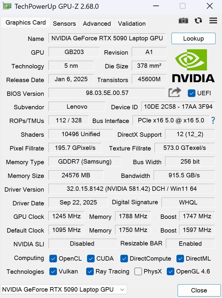 | Lenovo Legion 9 18IAX10 RTX 5090 (AV PRO microSD 128 GB V60) | |