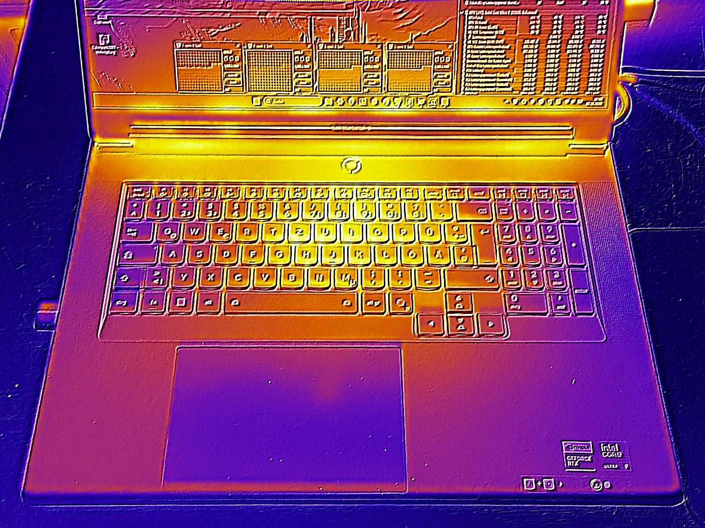 Net als bij het RTX 5080-model is de temperatuurontwikkeling enigszins merkwaardig. Terwijl de Legion 9 18 al relatief warm wordt in idle modus, worden de oppervlakken van het chassis nauwelijks warm onder belasting, maar bereiken soms vergelijkbare waarden.