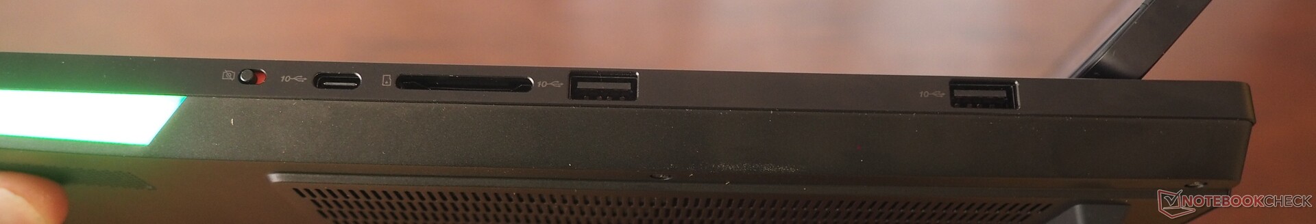 Het aantal en de verscheidenheid aan aansluitingen laat niets te wensen over, vooral omdat Lenovo moderne interfaces heeft geïnstalleerd (zie hieronder). Interessant genoeg was de kaartlezer langzamer dan op de RTX 5080 versie, terwijl de draadloze module aanzienlijk betere resultaten leverde. De 5 MP webcam, die een e-shutter biedt, produceert fatsoenlijke beelden.
