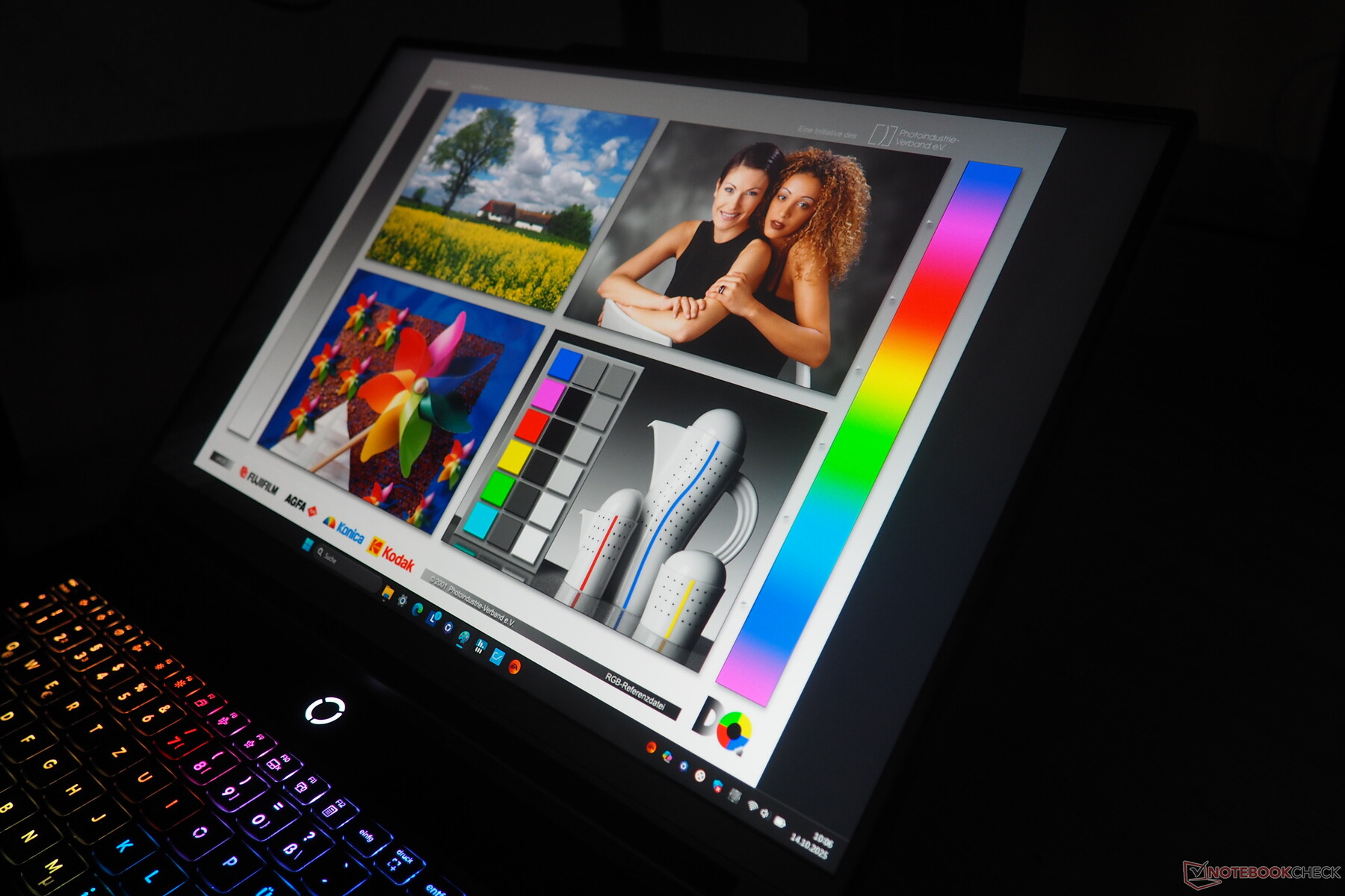 Het voordeel van de glanzende versie zijn de heldere kleuren, en dit 240 Hz paneel biedt een groot kleurbereik. Naast Display P3 wordt ook Adobe RGB bijna volledig gedekt.