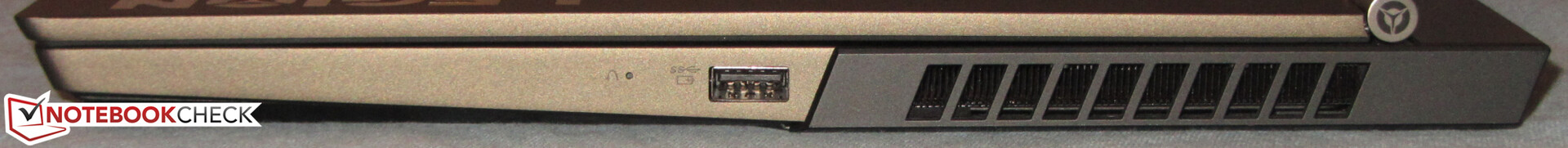 De Lenovo Legion C7 wordt geleverd met twee USB 3.2 Gen 2 Type-A poorten en één USB 3.2 Gen 1 Type-A poort. Er zijn ook twee USB-C poorten (een Thunderbolt 3 poort en een USB 3.2 Gen 1 poort). De USB 3.2 Gen 1 Type-C-poort kan worden gebruikt voor opladen. Er kan ook een DisplayPort-signaal worden uitgevoerd. Bovendien beschikt de laptop ook over een HDMI-poort. Al met al biedt de Legion C7 twee DP-uitgangen en één HDMI-uitgang. Er is geen SD kaartlezer aanwezig.