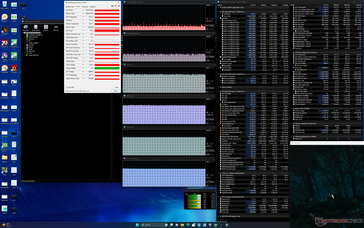 De CPU piekte naar 3,8 GHz en 92 W bij het starten van Prime95 stress voordat hij een paar seconden later daalde en stabiliseerde op 4,6 GHz en 84 W. De kerntemperatuur was erg warm met 100 C, wat suggereert dat de AMD-processor de koelmogelijkheden van de Legion Slim 5 14 tot het uiterste drijft. Het herhalen van deze test op de Blade 14 met een vergelijkbare Zen 4-klasse CPU zou resulteren in een koelere kerntemperatuur van 90 C in vergelijking.