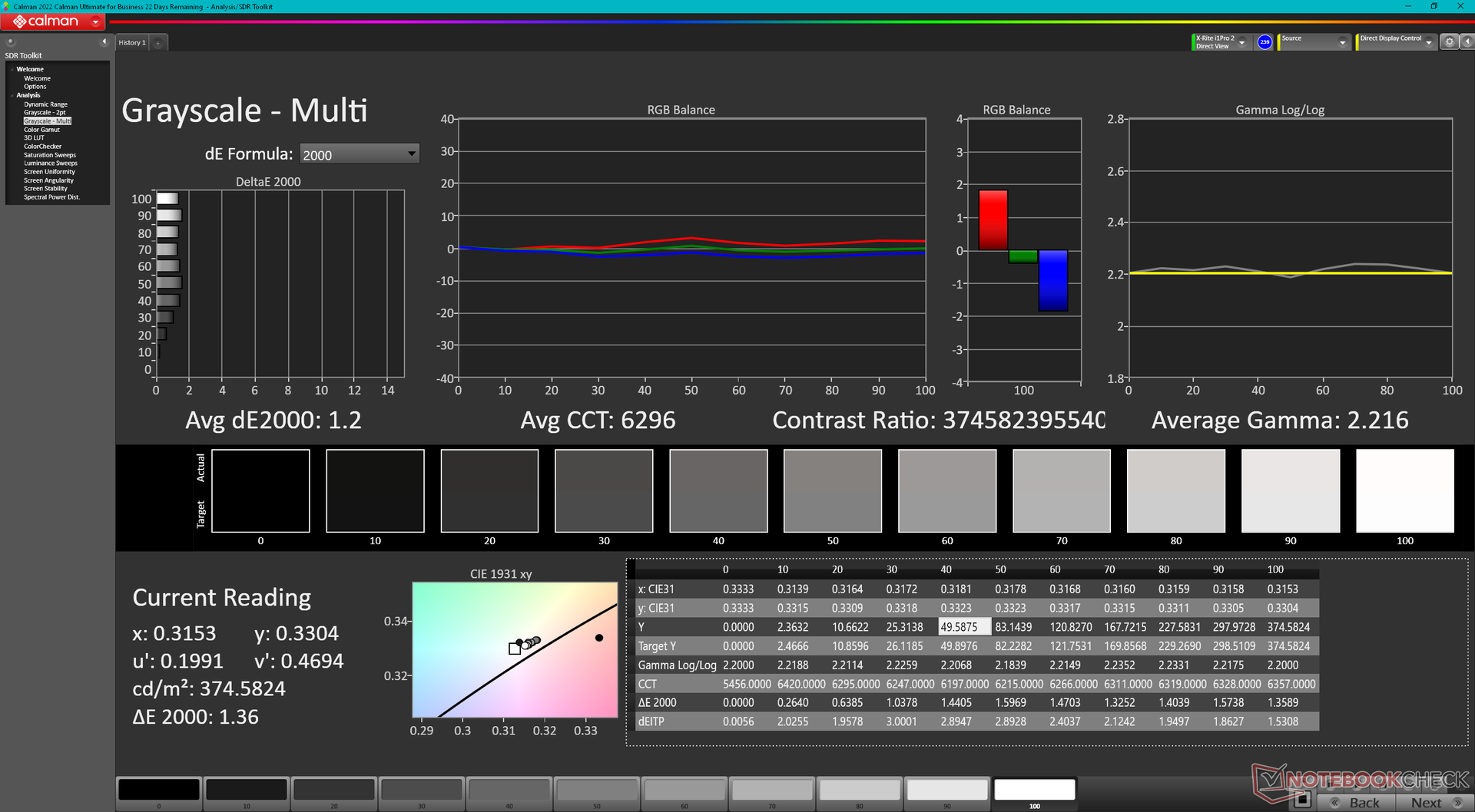 ΔE Greyscale Calman: 1.2 | ∀{0.09-98 Ø5}