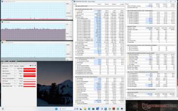 Stationair draaien op het bureaublad verbruikt tussen de 2 W en 7 W en is dus merkbaar minder dan concurrerende alternatieven, wat de extreem lange batterijlevensduur bij niet-veeleisende belastingen kan verklaren. Anders wordt het stroomverbruik bijna identiek aan dat van de 2021 ThinkBook 14s Yoga wanneer er zwaardere belastingen zoals games of Prime95 worden uitgevoerd. Prestaties-per-watt zijn dus aanzienlijk verbeterd ten opzichte van de oudere Core i7-1165G7 als het gaat om processorprestaties, terwijl de grafische prestaties gelijk blijven.
