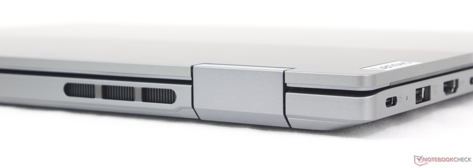 Alle poorten van het model uit 2021 zijn teruggekeerd voor deze nieuwste versie, zij het anders ingedeeld. De OneKey Recovery-knop van Lenovo zit nu bijvoorbeeld aan de onderkant in plaats van aan de linkerrand. We waarderen ook dat de poorten goed verdeeld zijn, terwijl ze strakker en drukker zijn op de VivoBook Flip 14 of Aspire 5 Spin 14.