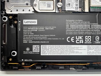 Vanuit het oogpunt van ontwerp verschilt de ThinkBook 16 G7+ slechts marginaal van de gewone ThinkBook 16 G7de basiseenheid van het Plus-model is echter ook van aluminium gemaakt. Hierdoor voelt het apparaat hoogwaardiger aan en is het stabieler. Het Plus-model is ook iets compacter omdat de behuizing minder diep is. De hele interne structuur is ook anders omdat er, naast een sterkere koeling (met een tweede ventilator), een aanzienlijk grotere batterij is geïnstalleerd. Er is ruimte voor twee M.2 2280 SSD's, maar het RAM is gesoldeerd.