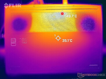 Hot spots aan het oppervlak kunnen bijna 50 C bereiken aan de boven- en onderkant, vergelijkbaar met wat we hebben waargenomen op het Gen 2 model ofDell Inspiron 16 Plus.