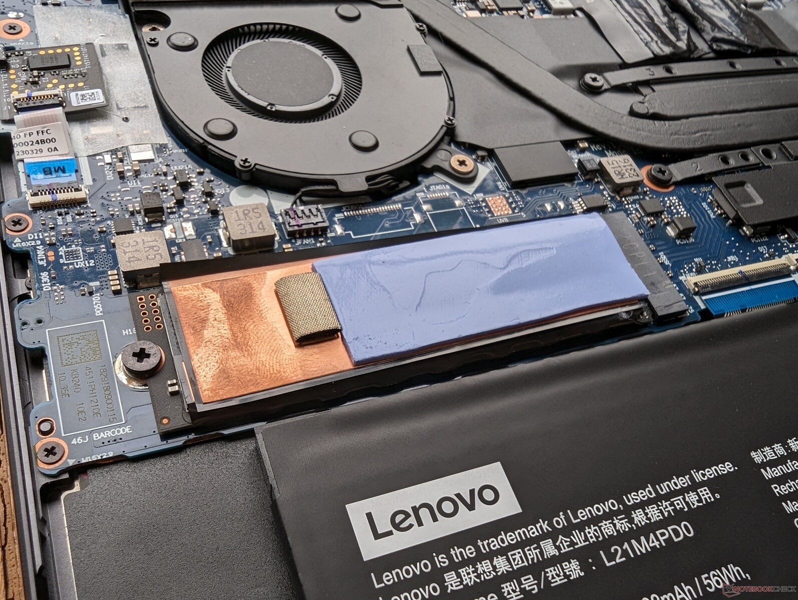 Het onderpaneel wordt vastgezet met acht T5 Torx schroeven voor relatief snel onderhoud. Toch valt er niet veel te upgraden, want alleen de M.2 SSD en batterij zijn eenvoudig te verwijderen, wat een gebruikelijke eigenschap is van convertible laptops.