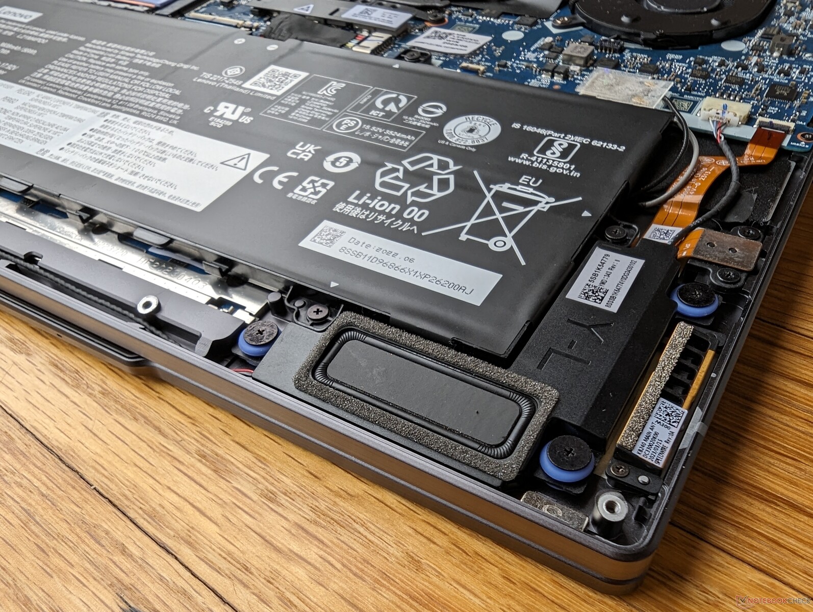 De batterijcapaciteit is iets hoger dan bij de ThinkPad X1 Nano Gen 3 om te compenseren voor ons veeleisendere OLED-touchscreen. De WLAN werktijd is met ongeveer 8 uur dan ook bijna gelijk tussen de twee modellen. Concurrerende systemen zoals de Latitude 9330 of HP Dragonfly G4 gaan minimaal één of twee uur langer mee.