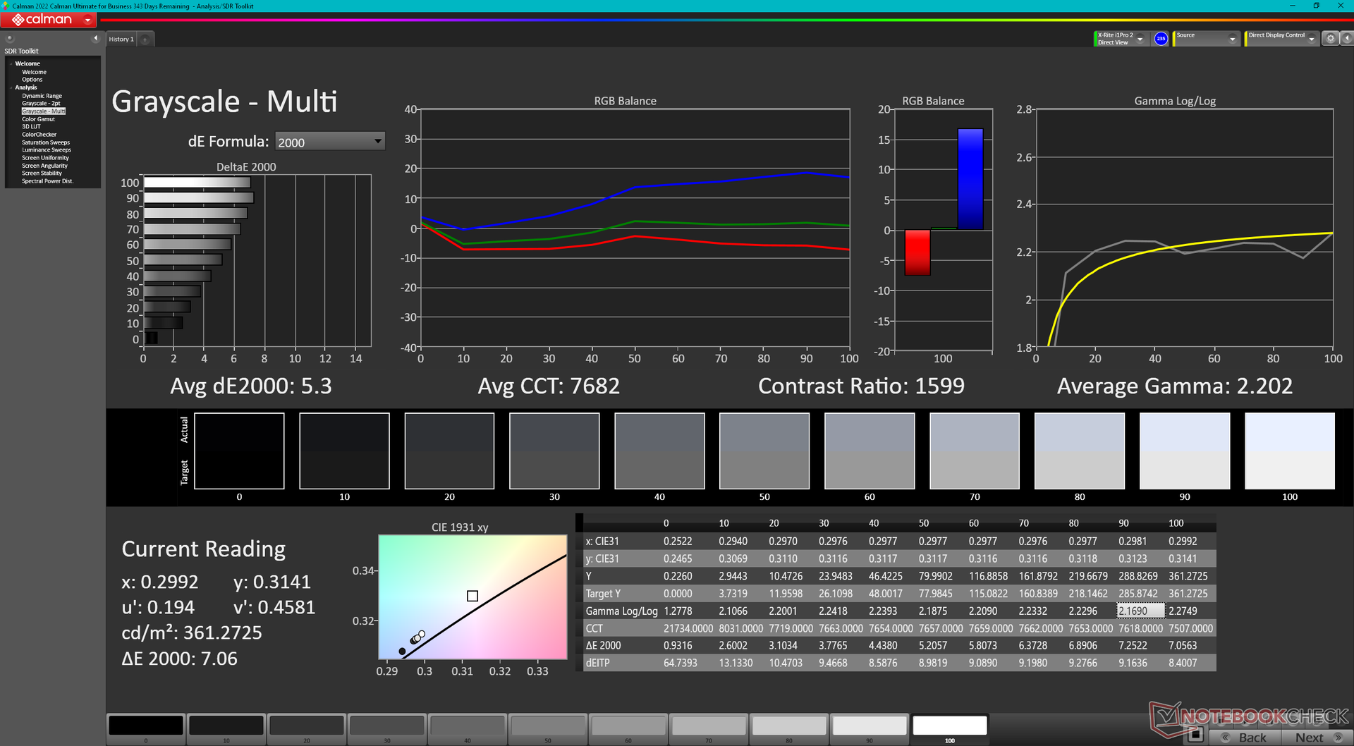 ΔE Greyscale Calman: 5.3 | ∀{0.09-98 Ø5}
